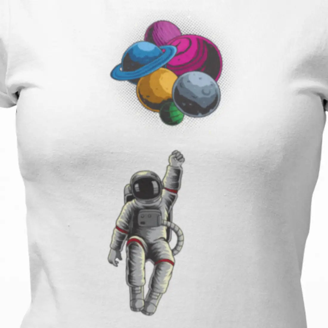 Sichere dir jetzt das „Astronaut I“ T-Shirt aus 100% Baumwolle mit einem verspielten Astronautenmotiv in Form eines Ballons. Perfekt für jeden Weltraum-Fan (oder für eine Reise zum Mond)!