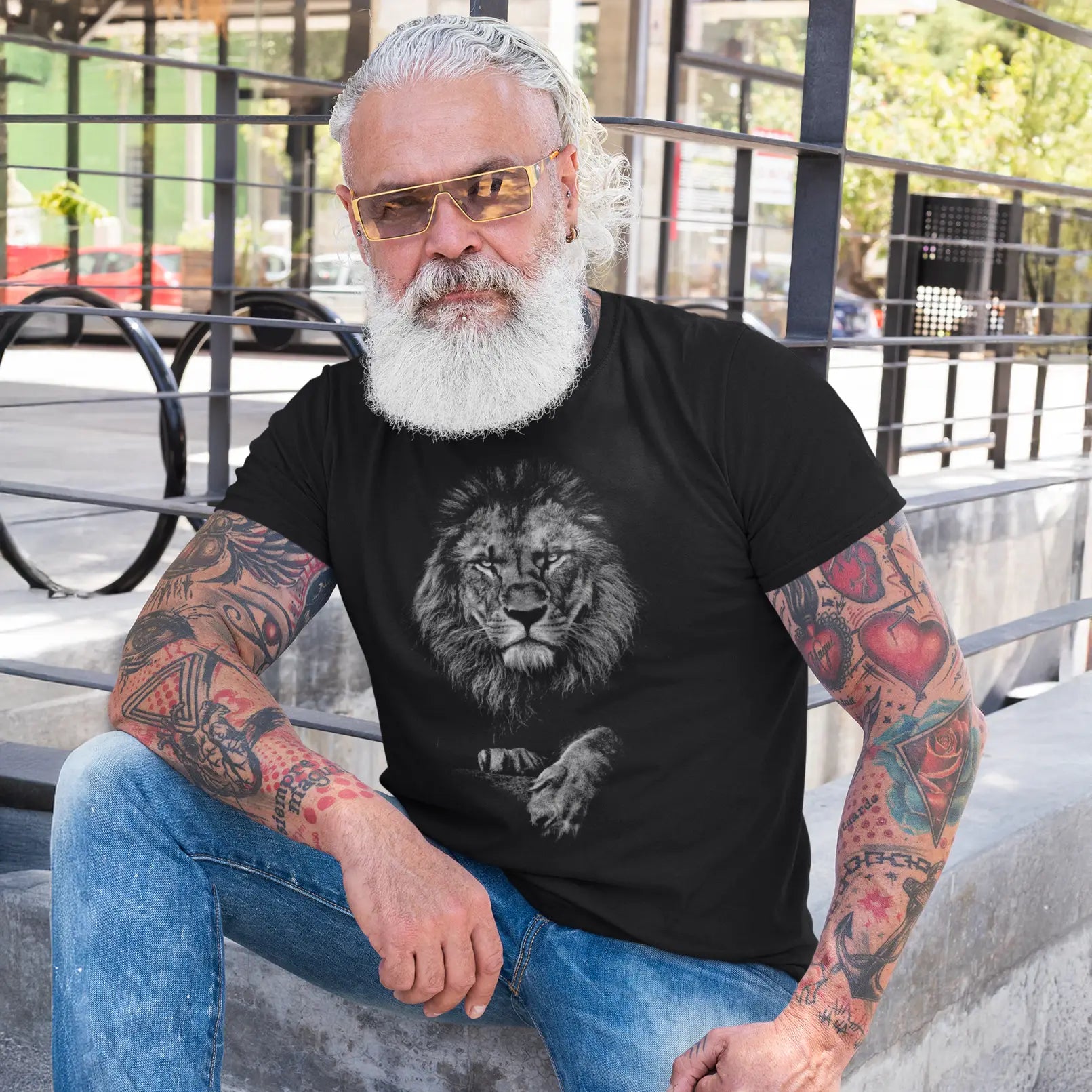 Erlebe die majestätische Kraft des Löwenkönigs mit diesem schwarzen T-Shirt. Zeige deine Liebe für die Tierwelt und trage stolz dieses einzigartige Design. Ein Muss für alle Könige und Königinnen der Savanne!